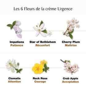 Association des 5 fleurs de Bach de la solution d'urgence mis au point par le Dr BACH + Crab Apple dans une crème légère, peu grasse, à appliquer en petite quantité